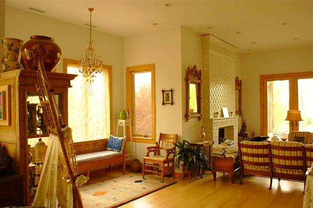 The Main Residence is integrated into the upper portion of the forested hilltop on the estate with a panoramic southwesterly view to the Hudson River. The clients wanted to fulfill their dream of renovating and expanding their childhood vacation home in an environmentally sensitive way. They wanted to create a new full-time home that would allow them to fully appreciate their natural surroundings as well as utilize and enjoy the atelier and private museum that had by this time already been established on the estate. The new structure incorporates a full-time residence for one brother and his wife, common entertainment and relaxation space to be used by both brothers and their spouses, and living quarters for the estate’s caretaker. The client wished to incorporate the original foundation and bearing walls into the new residence for sentimental reasons as well as because of their interest in sustainability. The pre-existing building was a one-story 4,200 sq. ft. cinderblock and concrete panel structure. The new 7,200 sq. ft. residence is fully powered by geothermal energy, and has an extensive cistern system that enables the owner to utilize rainwater for all property irrigation requirements year-round without accessing the public potable water supply.